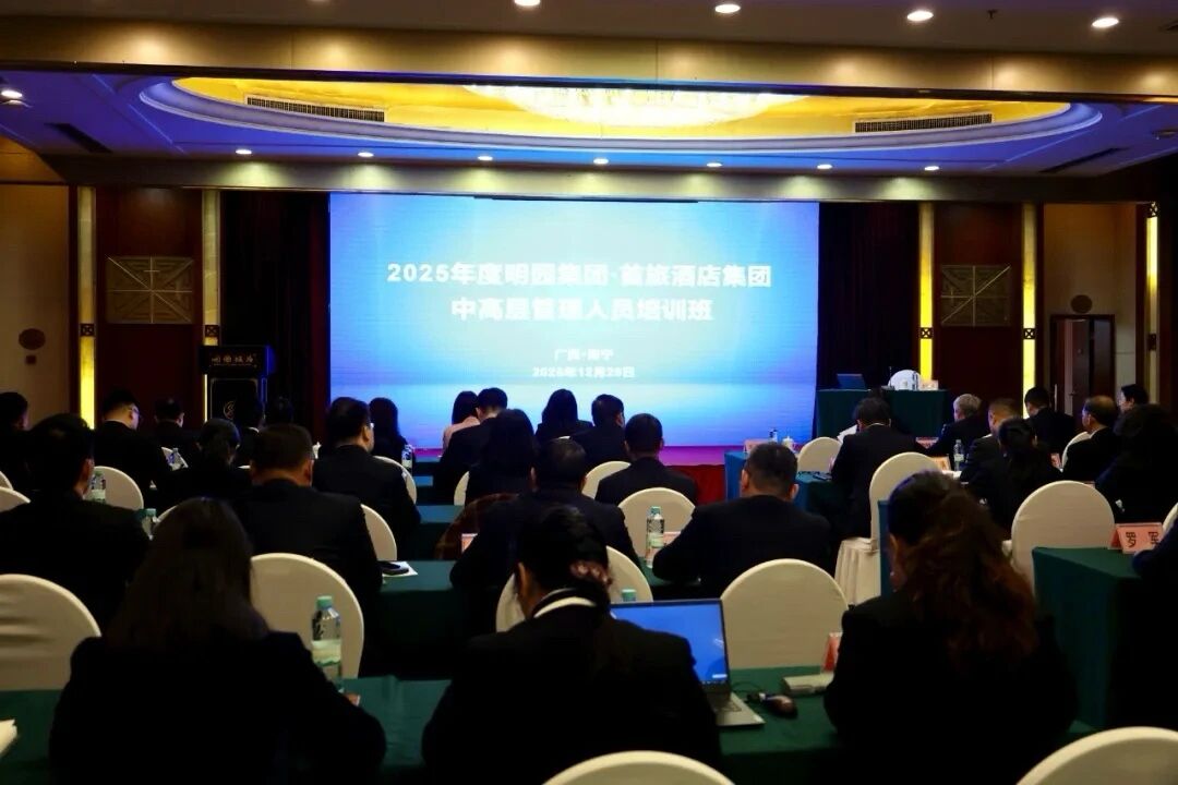 12月25日,明园集团举办2025年明园集团·首旅酒店集团中高层管理人员培训班,特邀首旅如家酒店集团副总裁毕海霞、发展中心总经理闫健到公司作酒店管理专题辅导授课,旨在助力明园集团核心管理团队精准洞察行业前沿动态,深化对中高端酒店品牌战略布局等方面的理解,力促双方合作项目务实落地,为明园集团酒店板块的提质升级与高质量发展注入新动能。