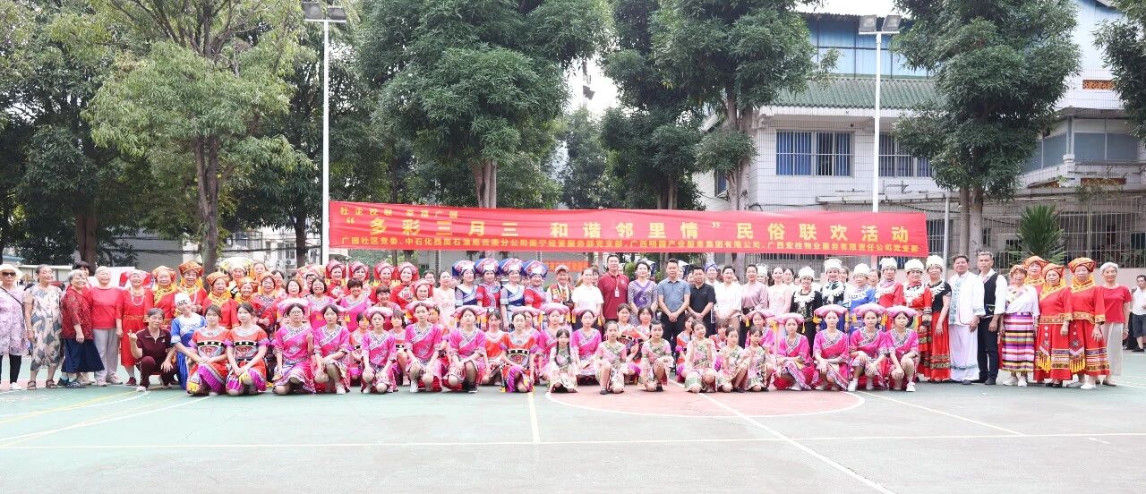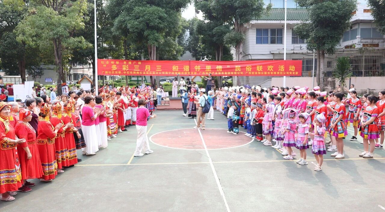 春风送暖,壮韵飞扬。4月13日,明园集团联合广园社区、中石化西南石油局云南分公司南宁经营服务部等多家单位,在青秀区葛村路石油小区大院开展“多彩三月三和谐邻里情”民俗联欢主题活动,联建单位500多名干部职工、师生与社区居民群众欢聚一堂,共庆“三月三”、共享壮乡情,有力助推弘扬中华民族优秀传统文化,促进民族团结进步创建,铸牢中华民族共同体意识。