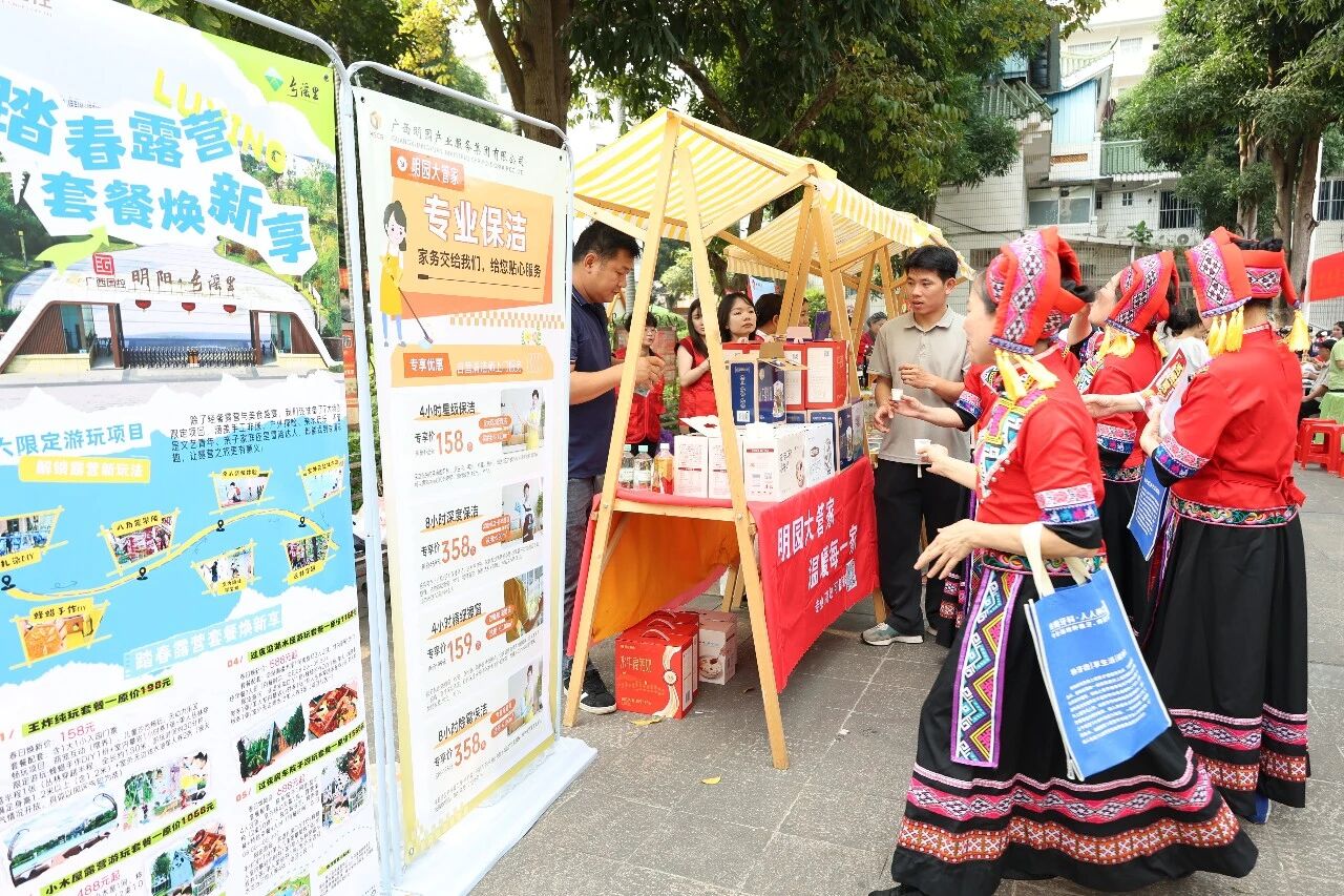 当天,明园集团多家所属企业在活动现场精心准备了特色产品展示品鉴区,明园大管家“推出家政清洁、上门维修等贴心服务;宏桂物业公司展示了西江牛奶、鼎祥鸡蛋等特色国控产品,乡谣里文旅公司推出了假期优惠旅游套餐和文旅特色活动,各企业展位上的产品和服务吸引了不少业主驻足了解、咨询。各联建单位的政策宣传、健康义诊、免费理发等公益服务也有序开展,志愿者们细致周到的服务,让业主们在感受民俗乐趣的同时,收获满满温暖。
