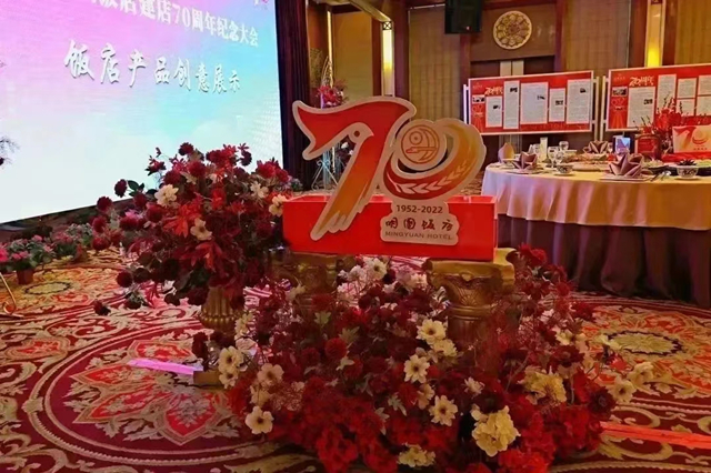 与会人员共同观看了明园饭店员工代表合唱店歌《日月星辰》和70年发展历程宣传片《七十载再起航 秉匠心创辉煌》。