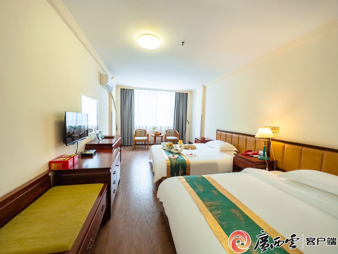 园湖饭店的独特魅力,不仅体现在硬件与服务的升级上,更在于其浓厚的人文温度。饭店经理黄霞介绍,临近三月三等特殊时期,全体员工会身着绚丽的民族服饰,以饱满的热情迎接八方来客。上餐时,为客人精心配送象征吉祥如意的五色糯米饭,房间内也会精心布置,将毛巾折成可爱的小动物造型,让客人一踏入房间,便能感受到家一般的温馨与尊重。